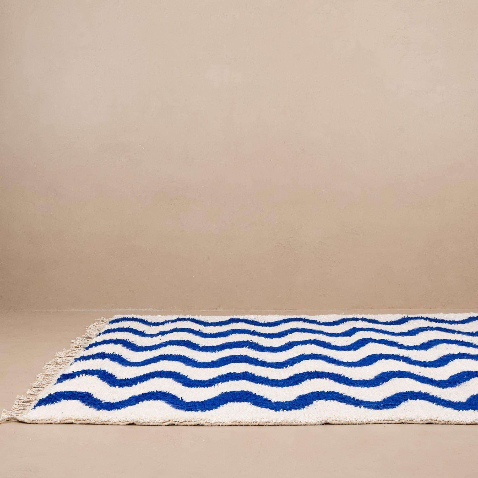 Transform your living space with the timeless elegance of our Handmade Beni Ourain Rug. This exquisite blue and white Moroccan rug is a true masterpiece, crafted by skilled artisans who have perfected their craft over generations. Each piece is unique, embodying the rich cultural heritage and artisanal excellence of Morocco.