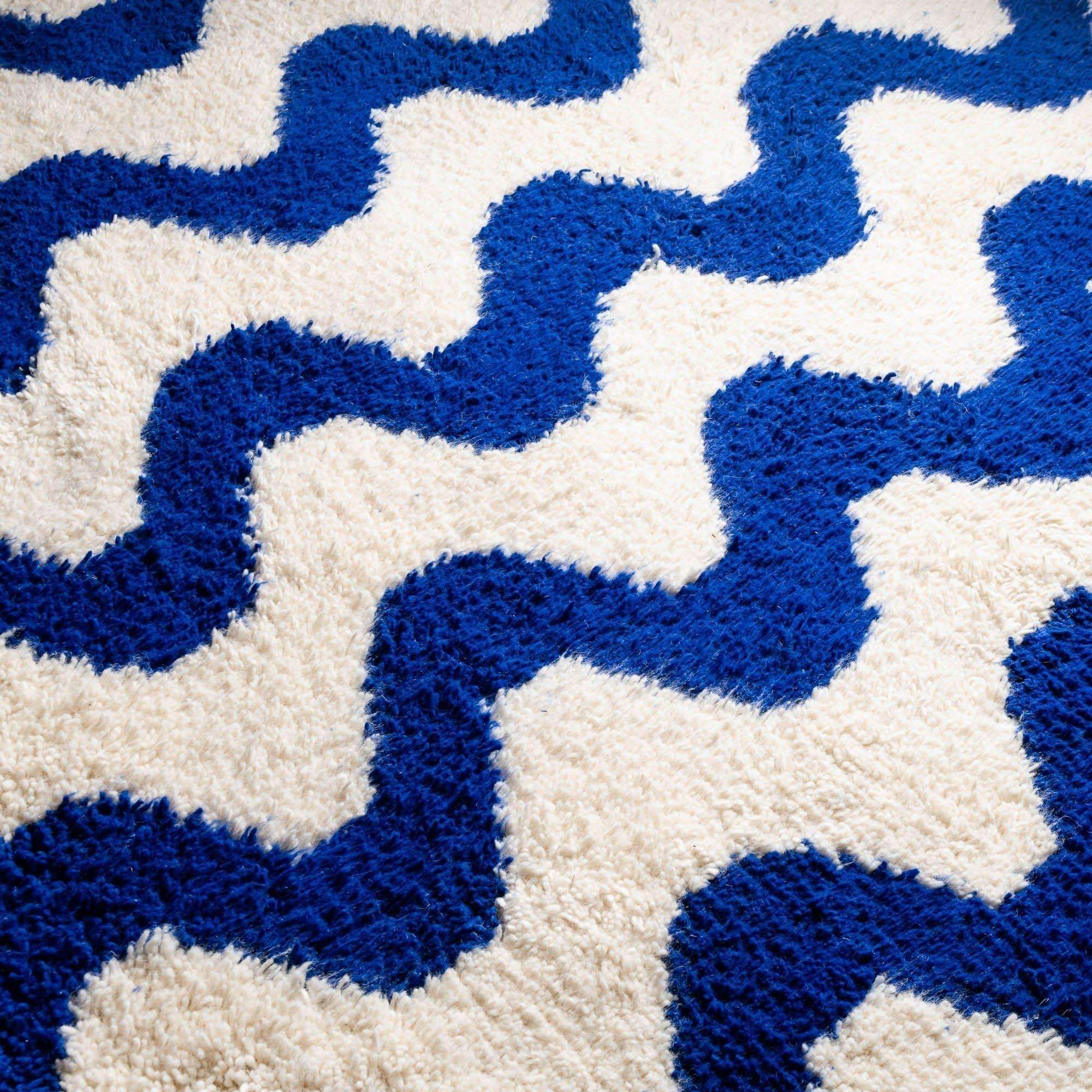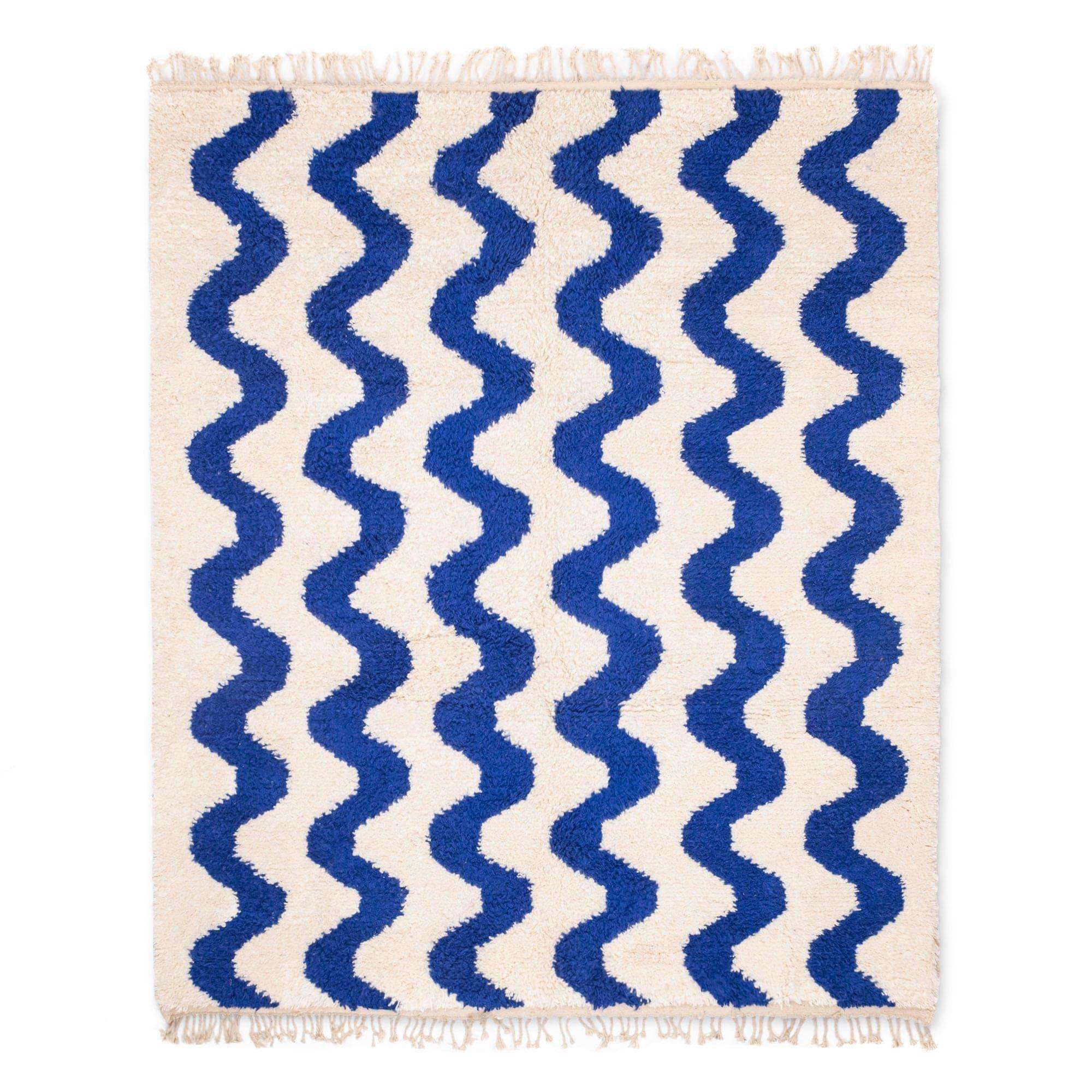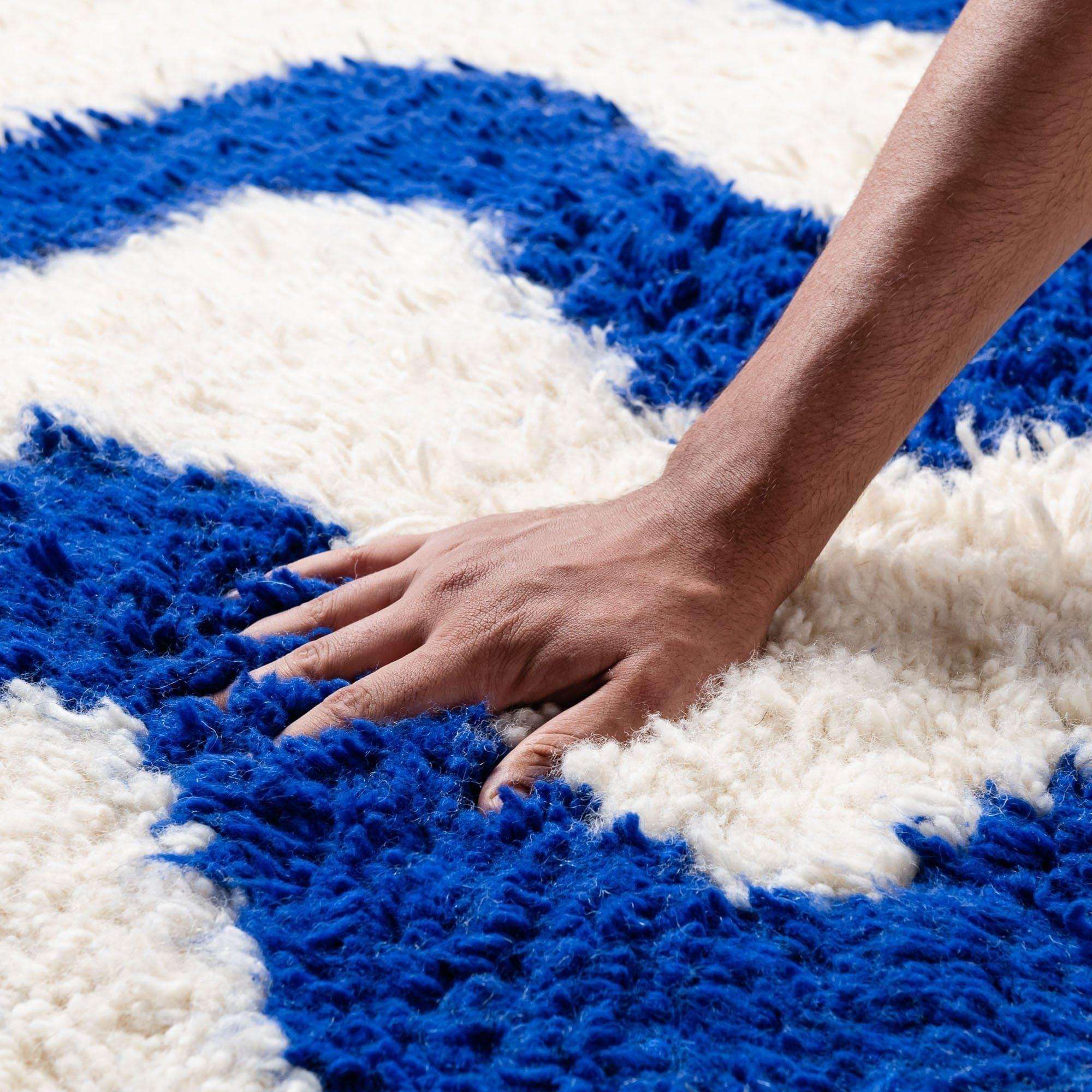 - Authentic Design: Our handmade Moroccan rug features the traditional Beni Ourain pattern, renowned for its geometric simplicity and striking aesthetic. The classic blue and white color scheme adds a sophisticated touch to any room, seamlessly blending with various décor styles.