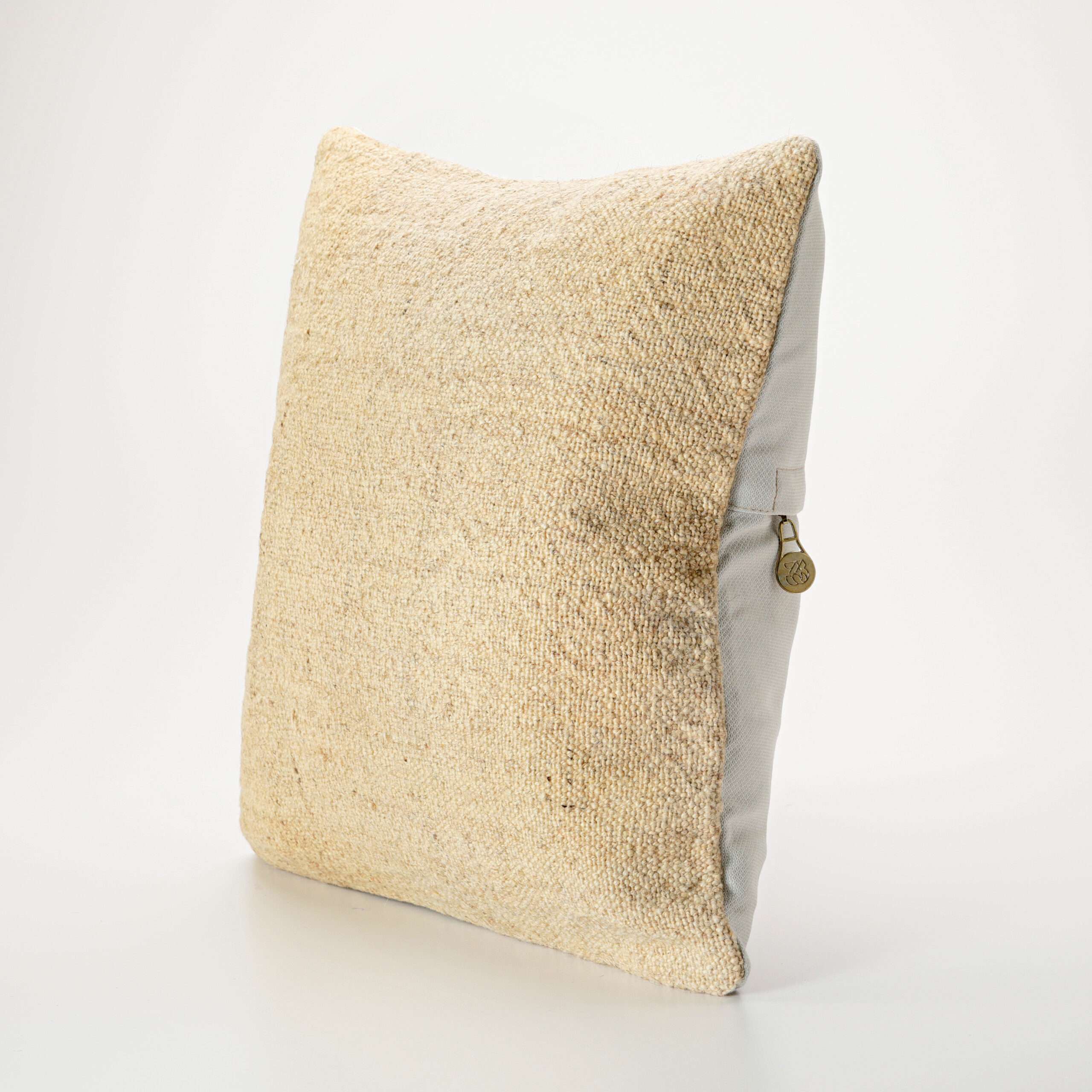 Materials: Handwoven artisan-crafted kilim front. Soft virgin cotton backing. Inlaid soft gold zipper.