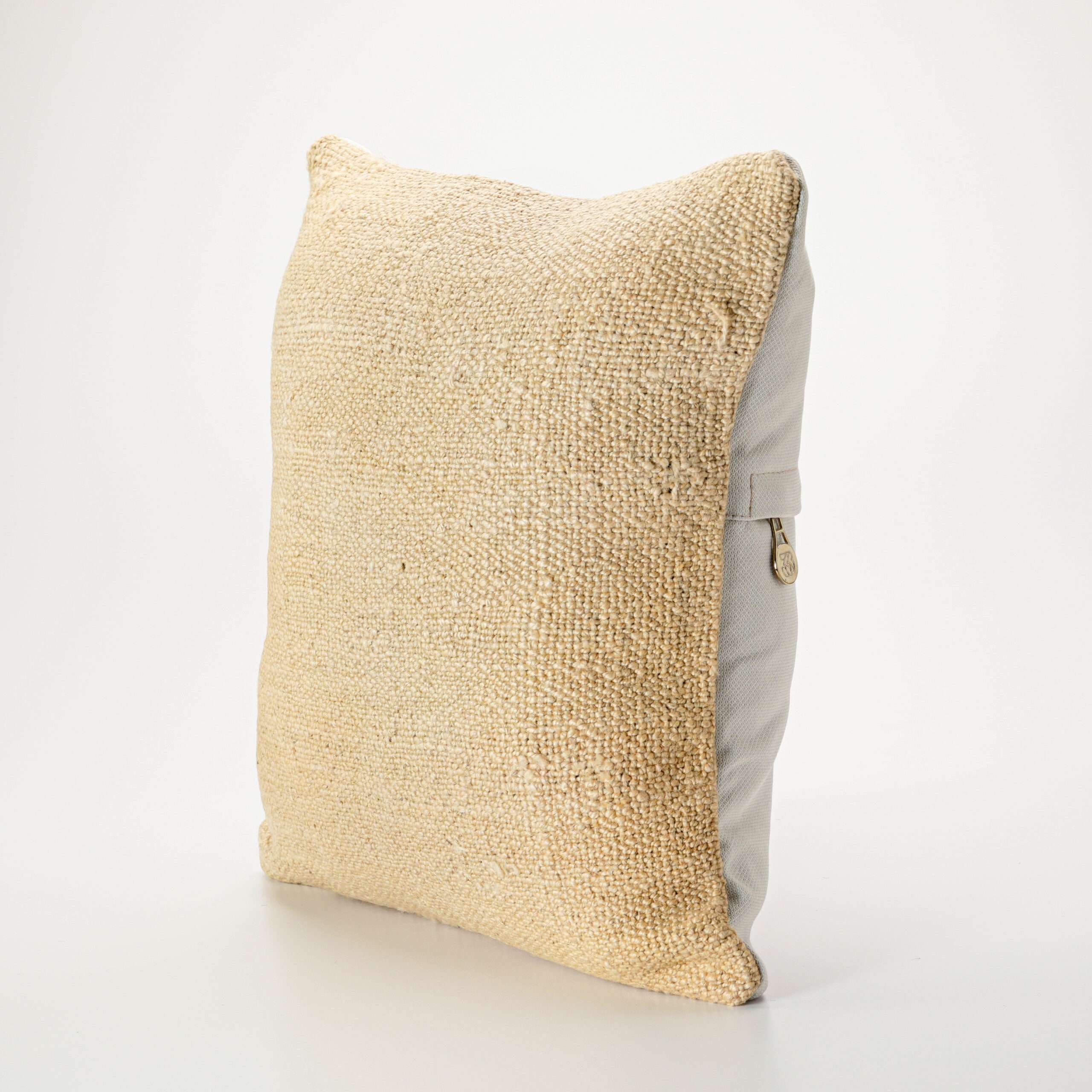 Materials: Handwoven artisan-crafted kilim front. Soft virgin cotton backing. Inlaid soft gold zipper.