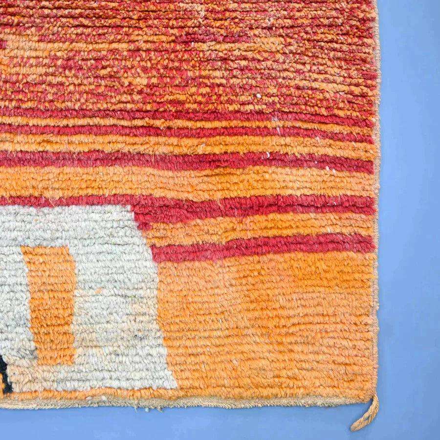 Hand-knotted by professional Moroccan women artists, this rug is made from genuine Moroccan lambswool to ensure the highest quality and utmost comfort.