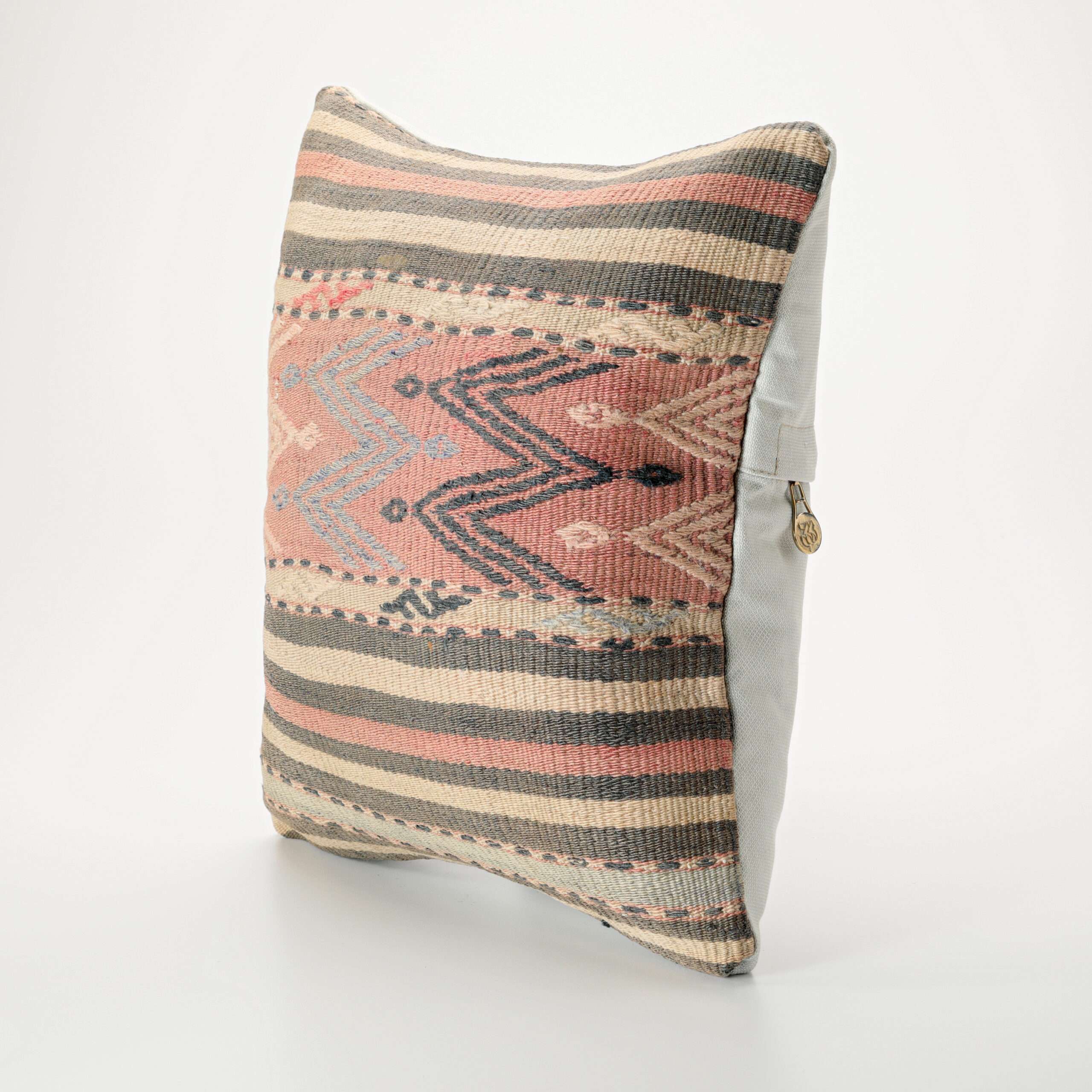 Materials: Handwoven artisan-crafted kilim front. Soft virgin cotton backing. Inlaid soft gold zipper.